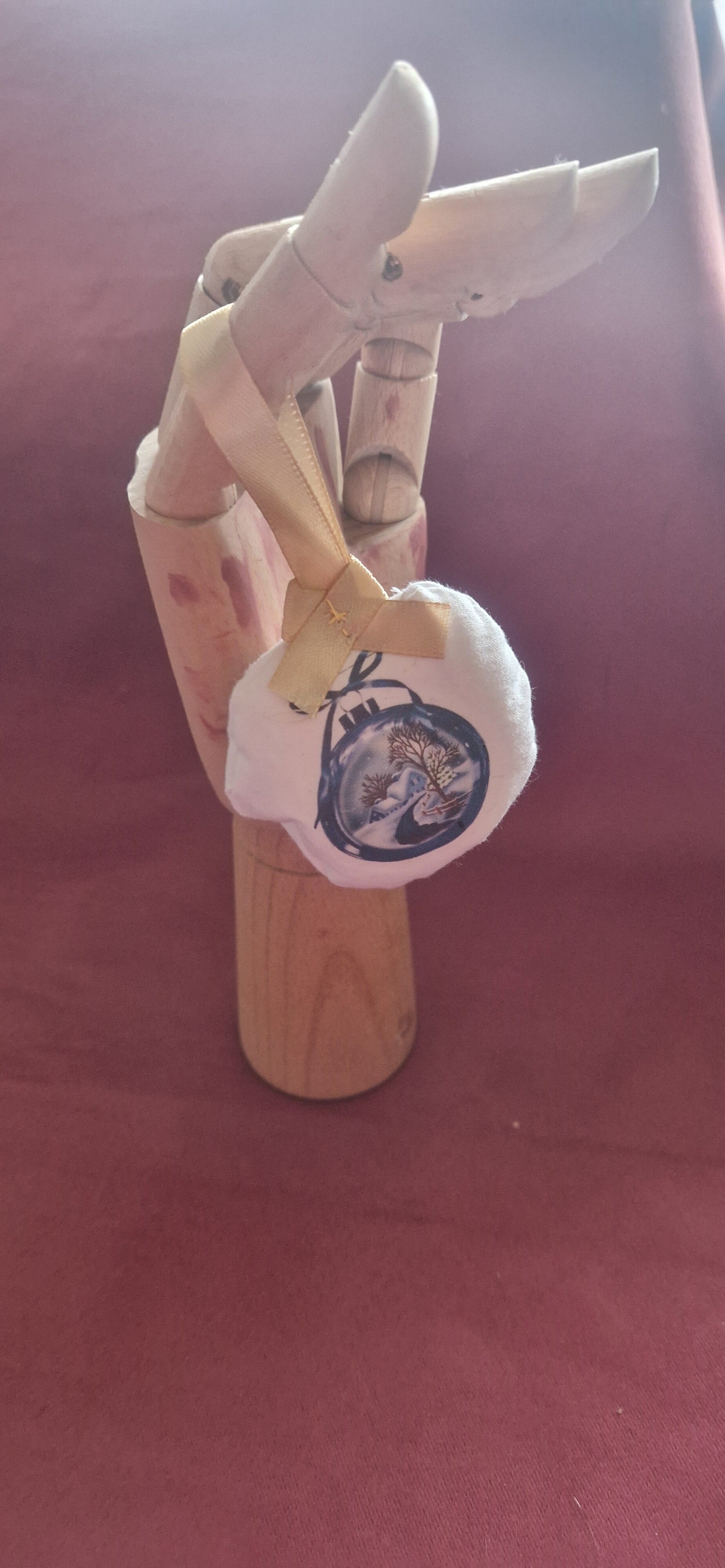 Boule de Noël en tissu et micro billes motif boule avec paysage ruban au choix rouge, doré, bleu