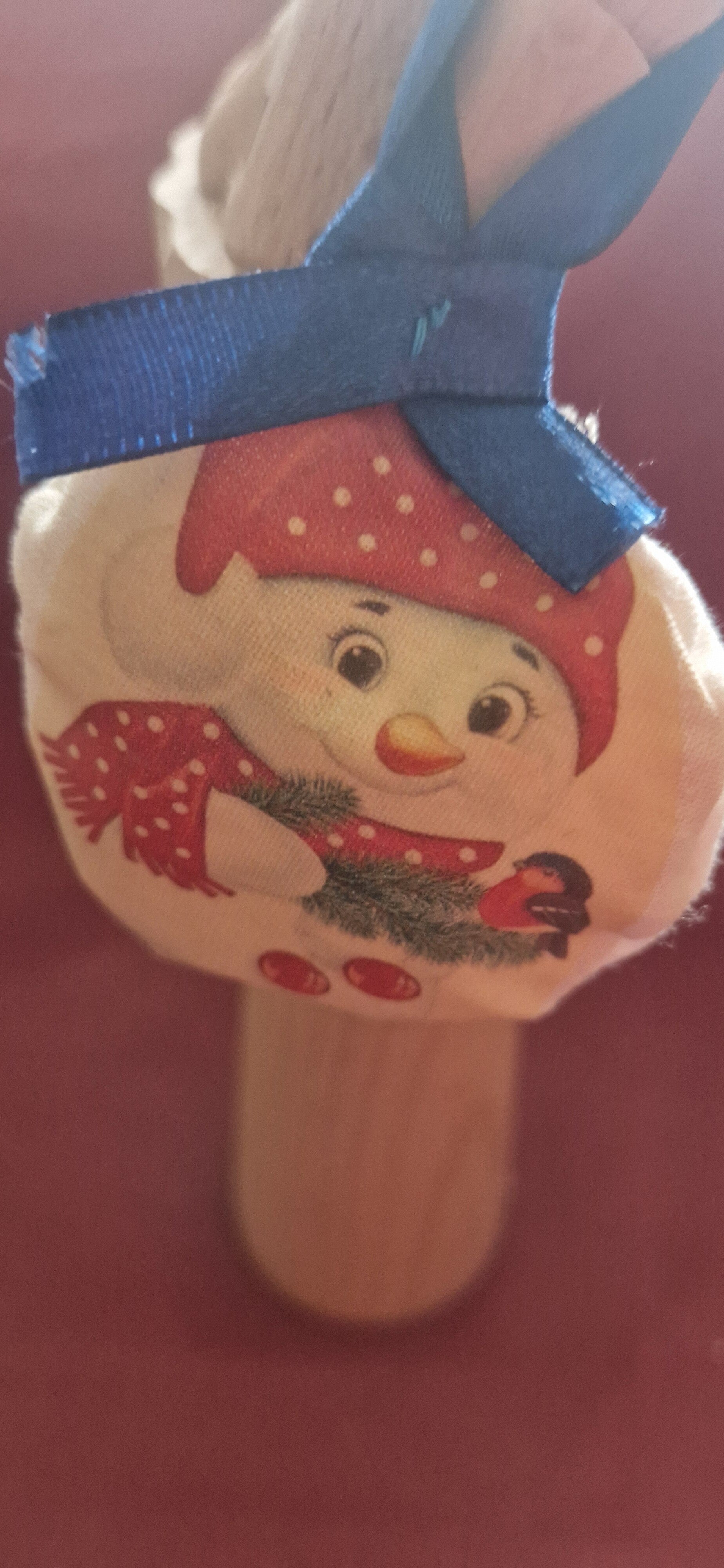Boule de Noël en tissu et micro billes motif bonhomme de neige avec oiseau ruban au choix rouge, doré, bleu