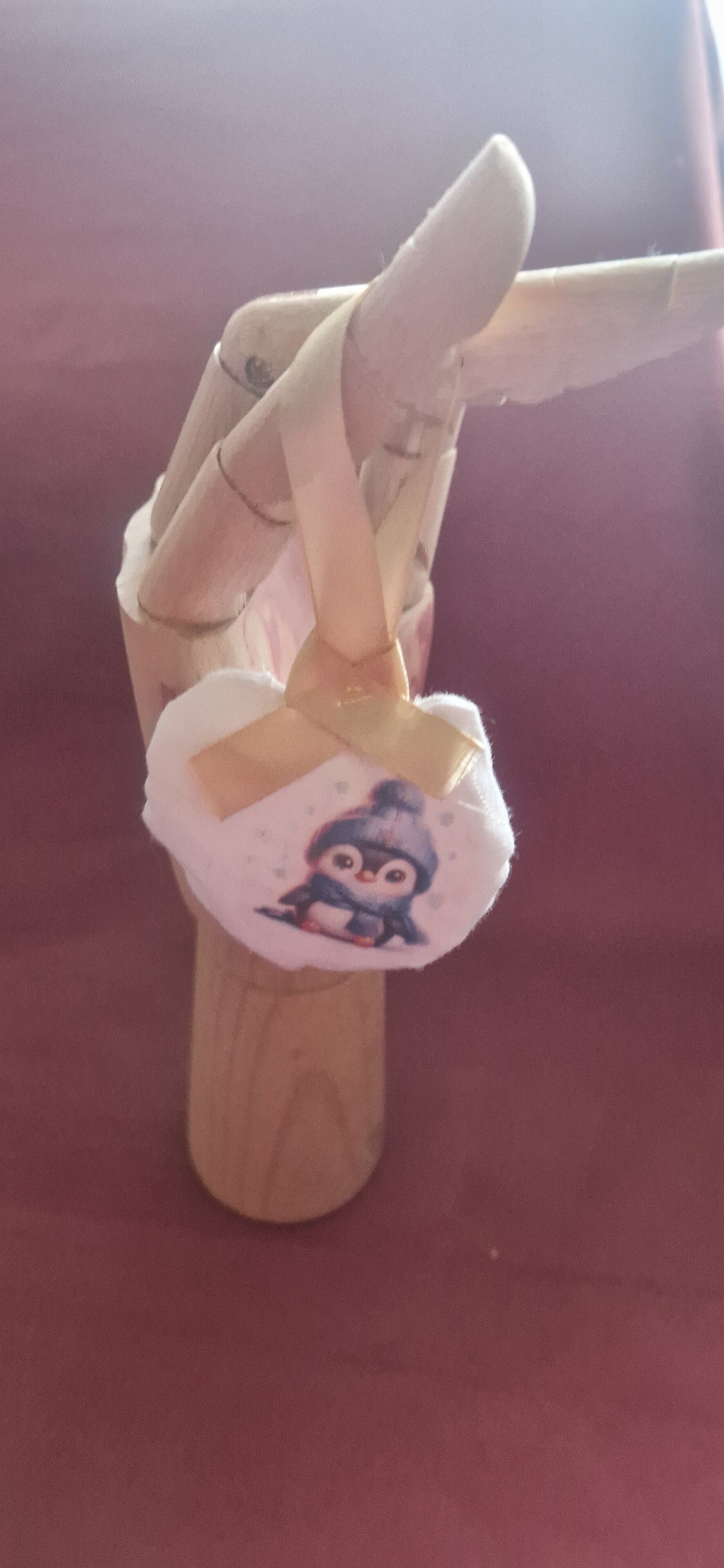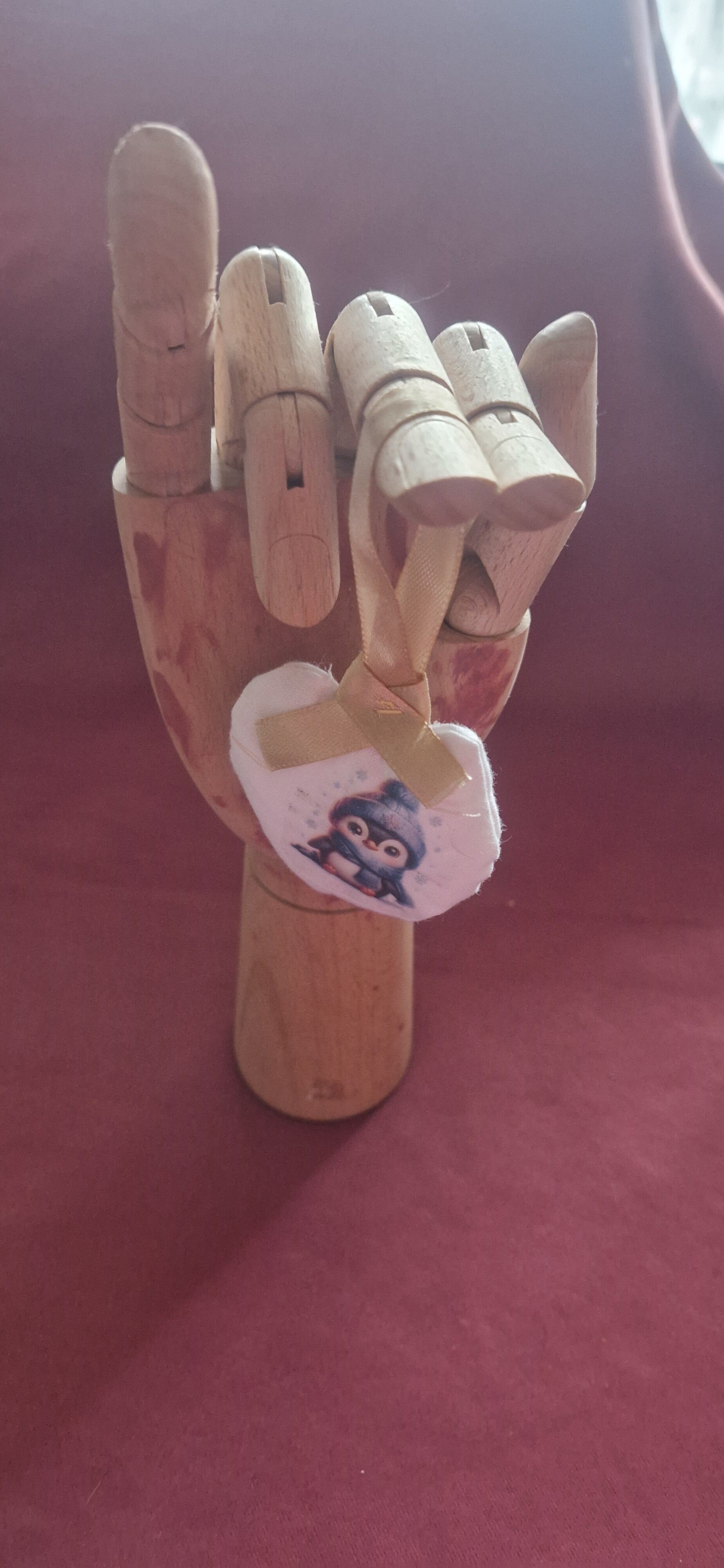 Boule de Noël en tissu et micro billes motif Pingouin avec bonnet et écharpe ruban au choix rouge, doré, bleu