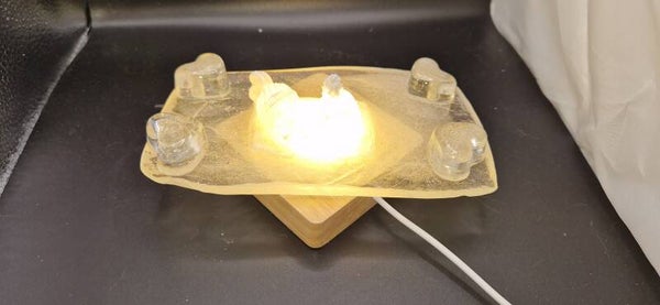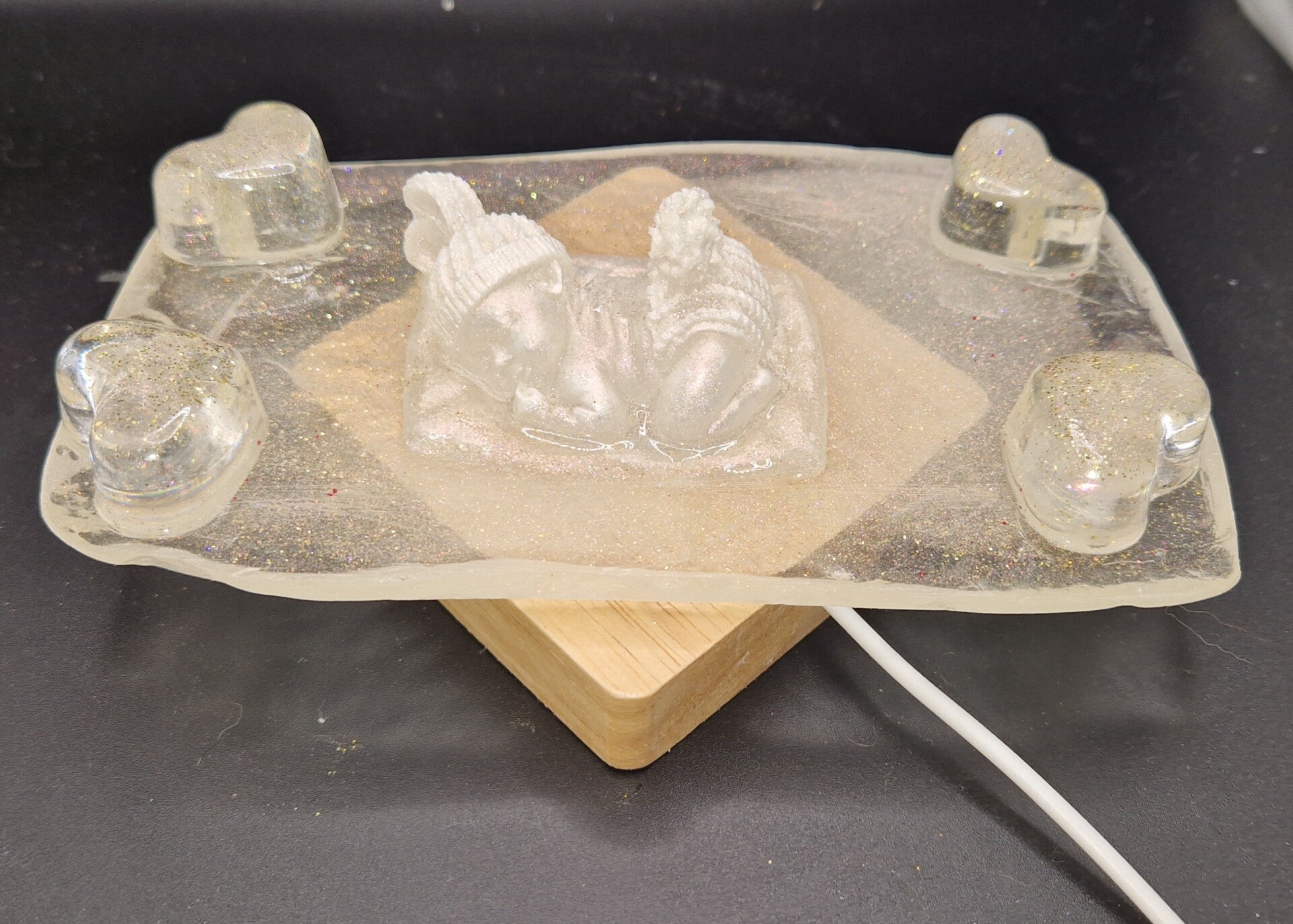 Lampe en résine rectangulaire représentant un bébé qui dort avec des coeurs, support carré à led