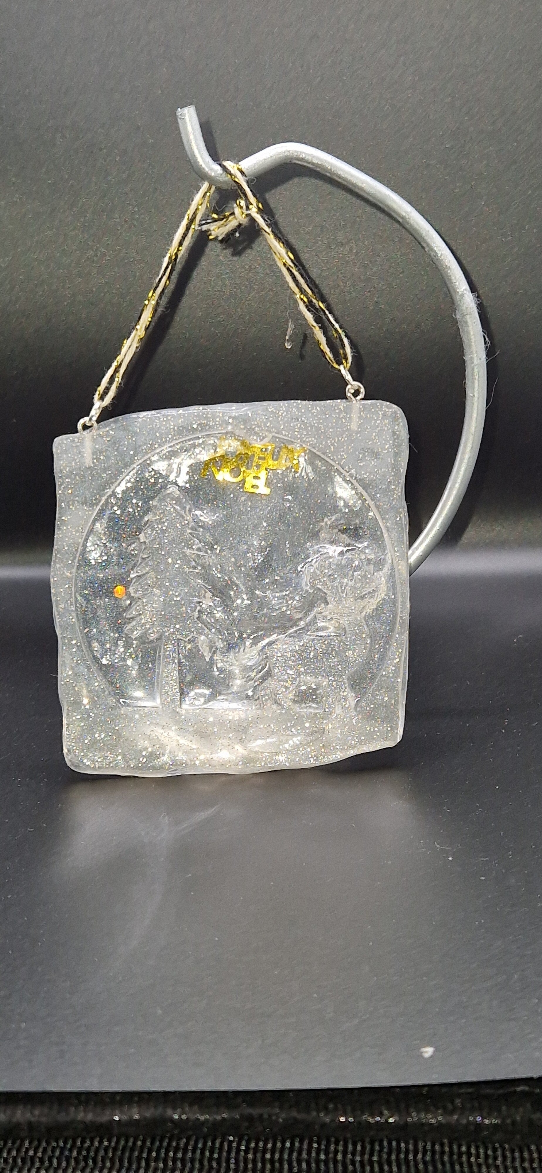 Décoration Noël rectangulaire motif paysage couleur transparent matière résine