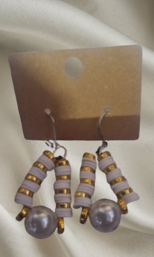 Boucle d'oreilles perles plates blanches, perles rondes, grosse perle ,fermoir hameçon