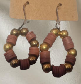Boucle d'oreilles acier perles rondes dorées et perles plates marron