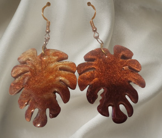 Boucle d'oreilles acier et résine motif feuilles en résine couleur