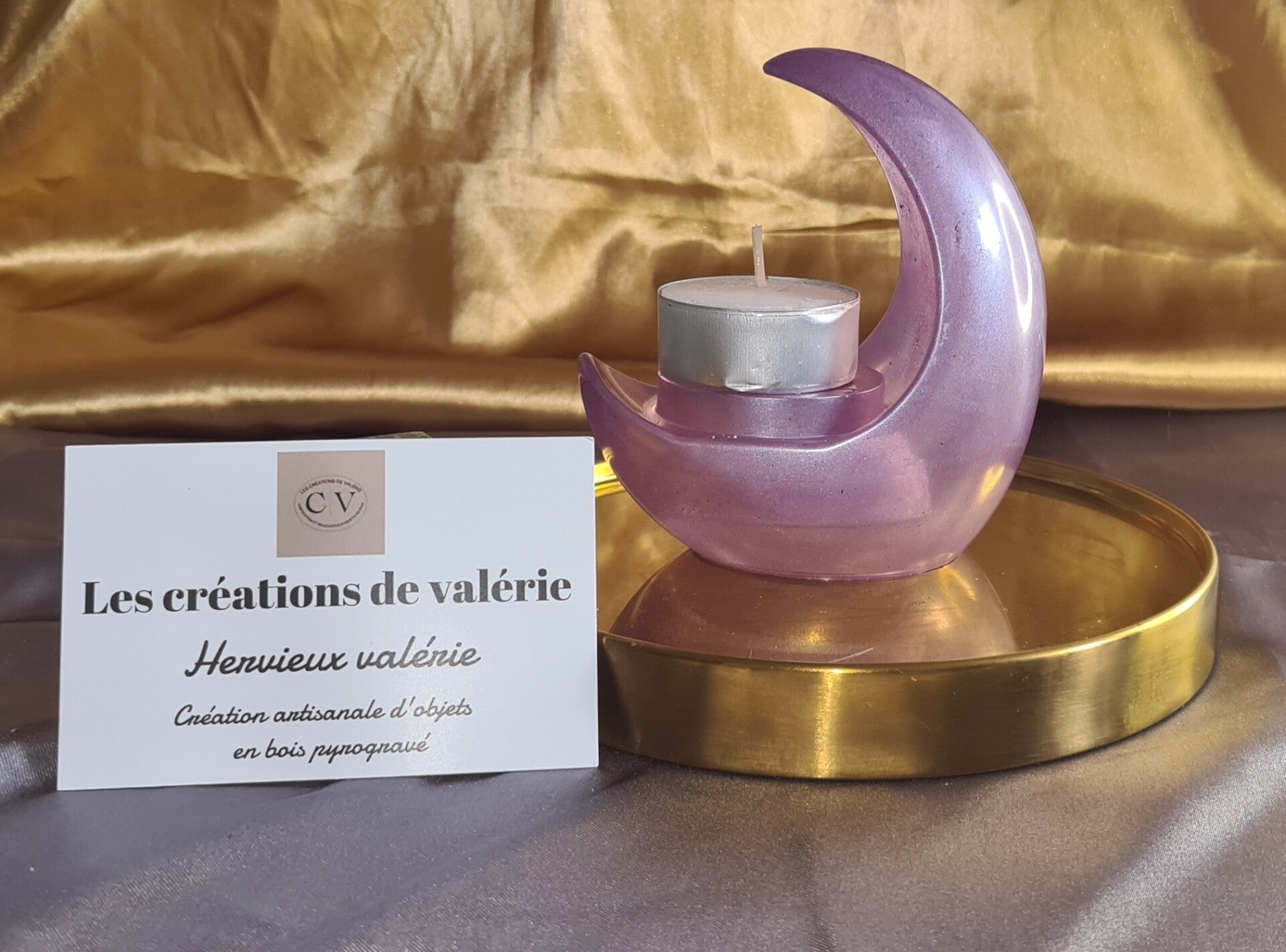 - Bougeoir en résine lune, couleur rose brillante ( bougie rechauffe plat) dimension 15 cm