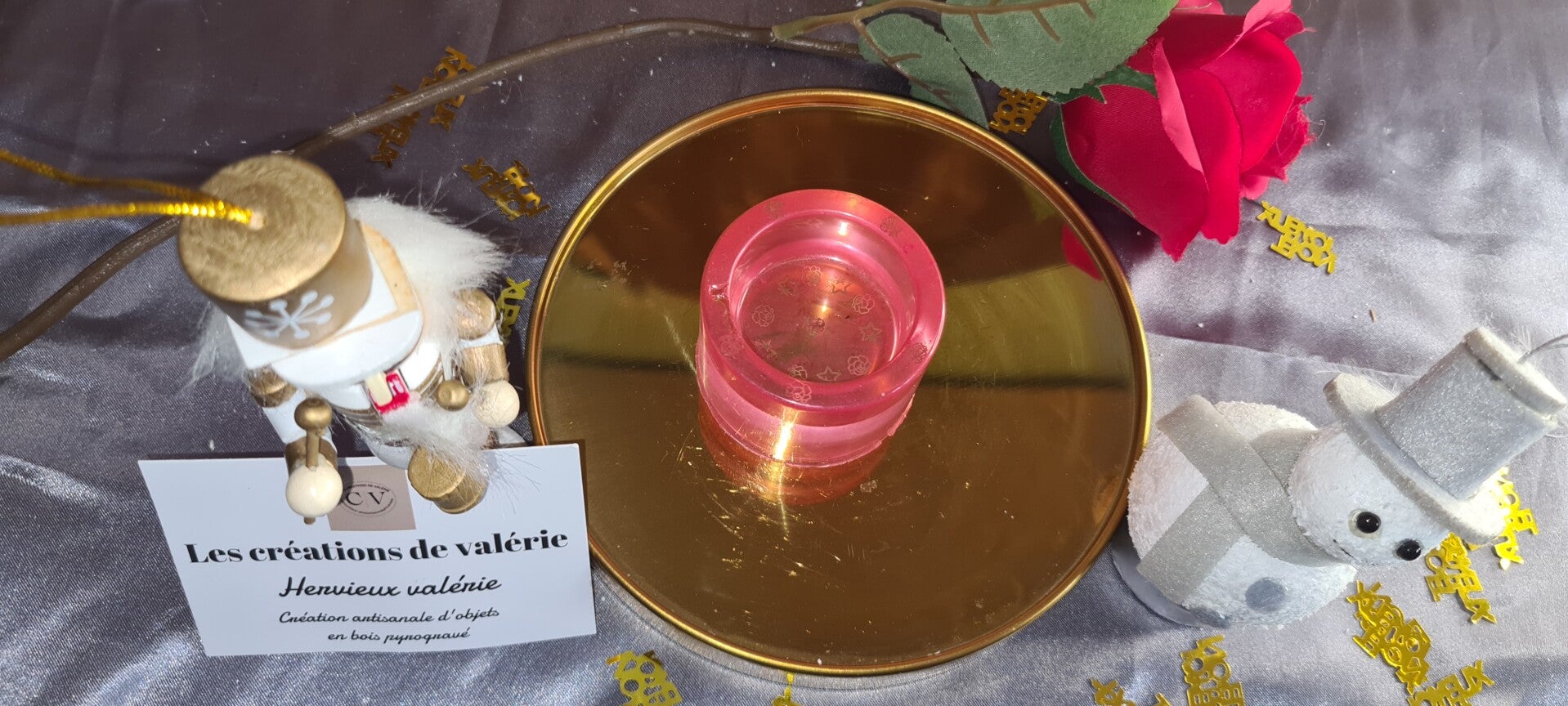 - Bougeoir rond en résine en forme de spirale, couleur rose clair brillante motif rose Incorporé ( bougie chandelle) dimension 5 cm