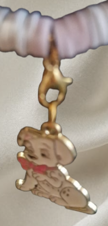Bracelet en perles plates rose et blanches cordon élastique, pendentif acier dalmatien doré Collier rose