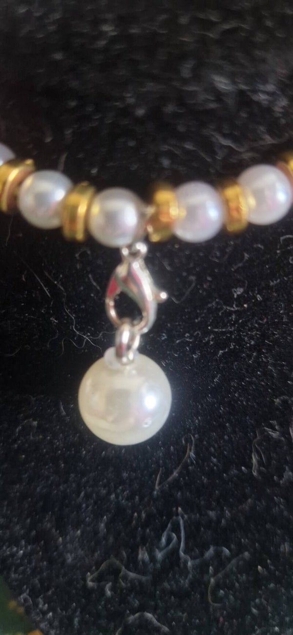 Bracelet en perles rondes blanches, cordon élastique, pendentif perle blanche