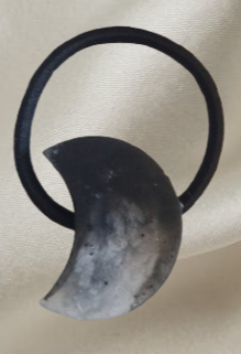 - Élastique à cheveux en résine forme gros croissant lune noir et blanc,