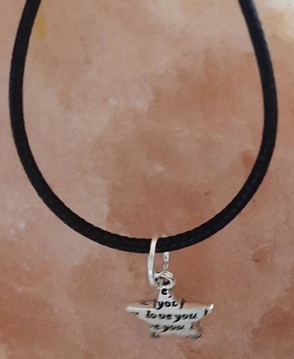 Collier avec pendentif étoile argenté cordon ciré cuir noir avec boucles