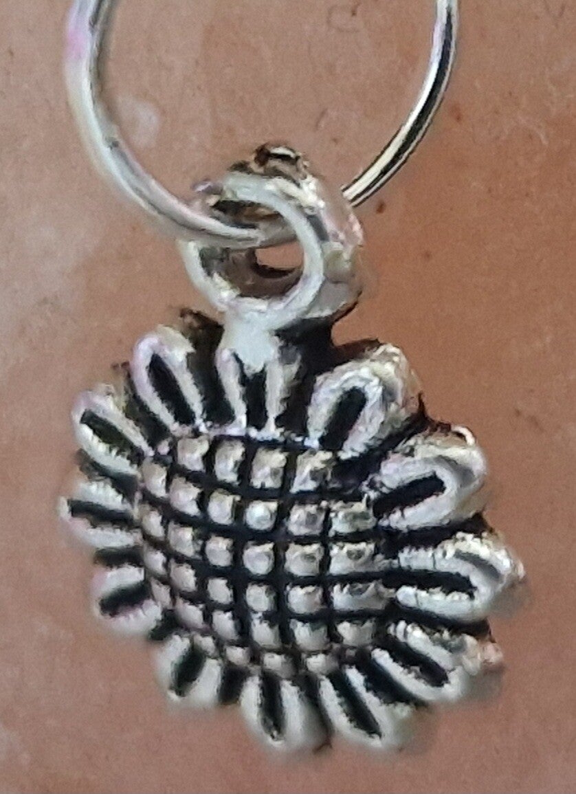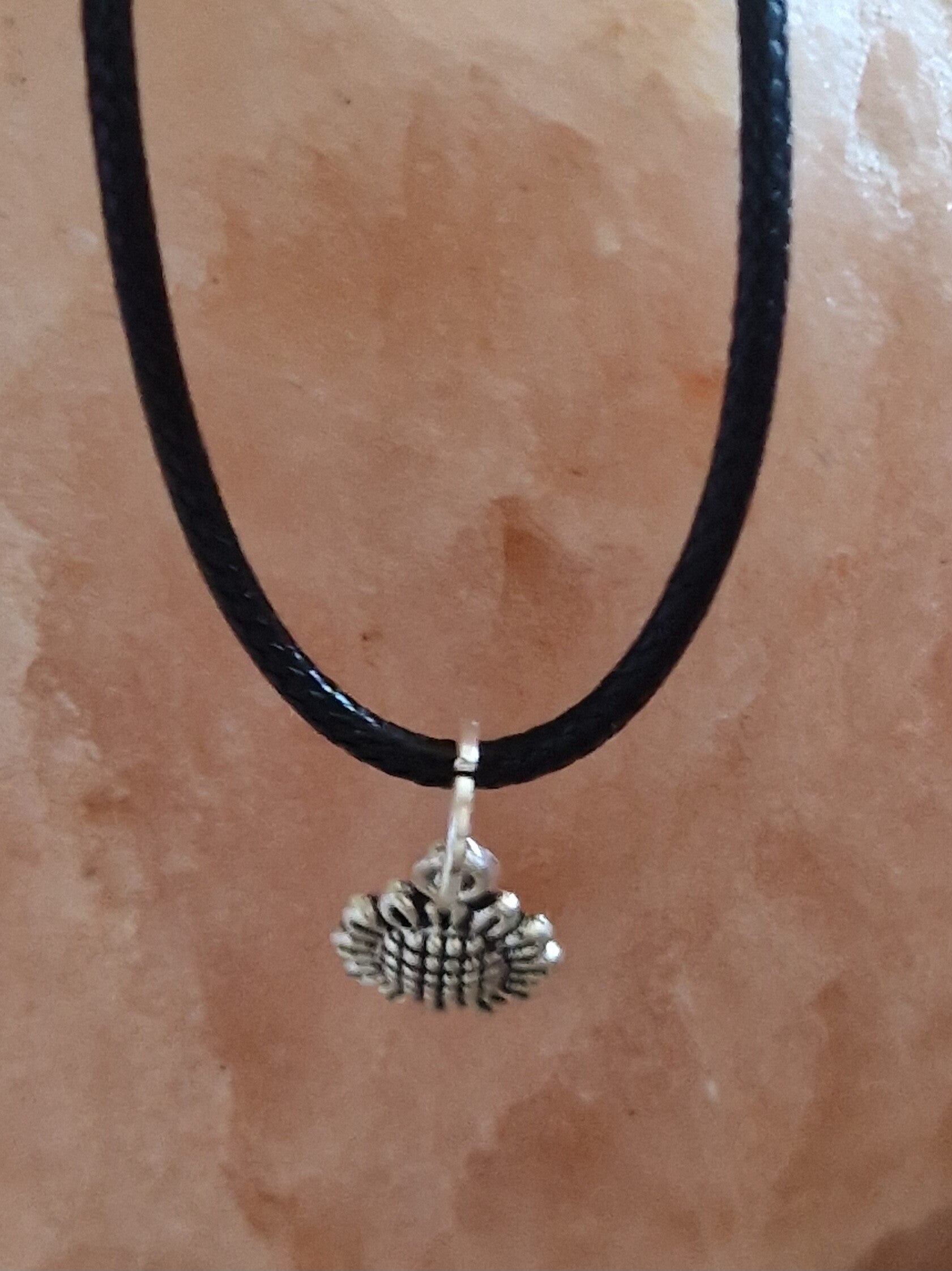 Collier avec pendentif fleur argenté modèle 2 cordon ciré cuir noir avec boucles