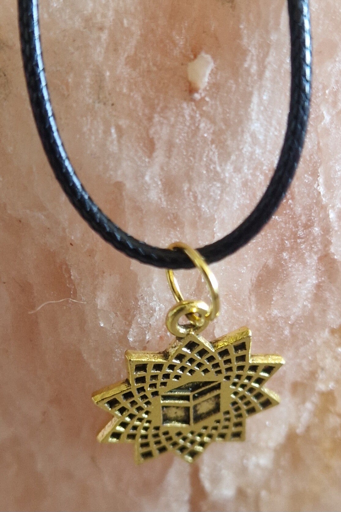 Collier avec pendentif étoile avec coffre doré modèle 1 cordon ciré cuir noir avec boucles