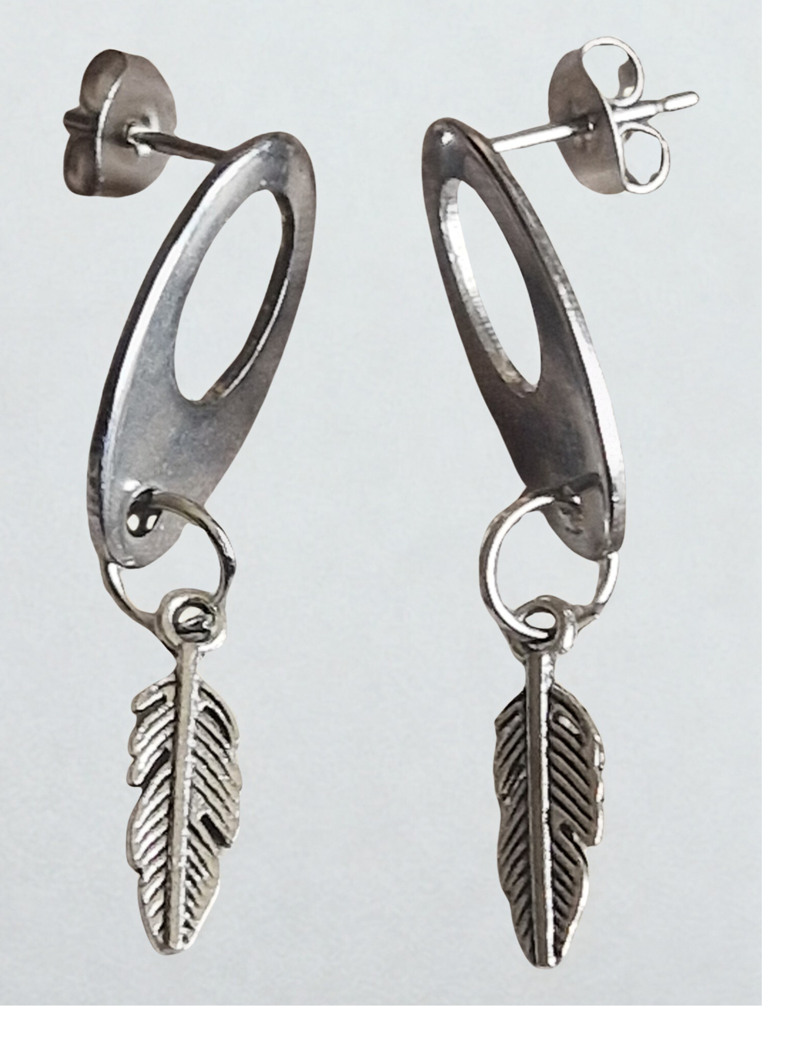 - Boucles d'oreilles plume argenté