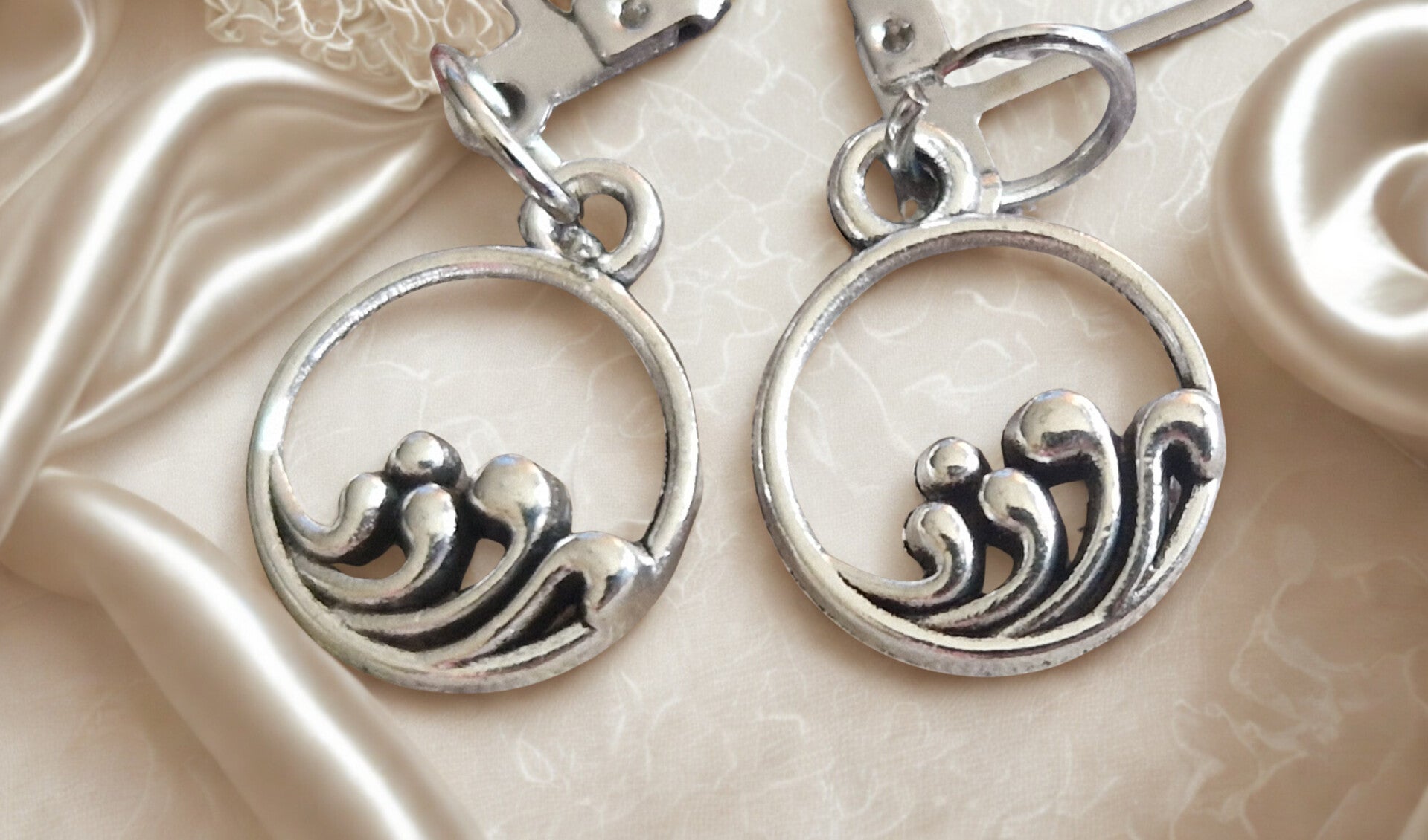 Boucle d'oreilles acier motif anneau avec vague couleur argenté,