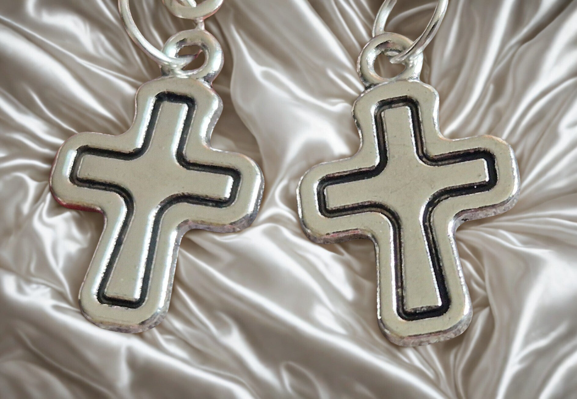 Boucles d'oreilles acier motif croix modèle 3 argenté