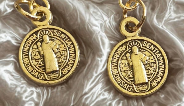 Boucles d'oreilles acier motif rond avec personnage doré