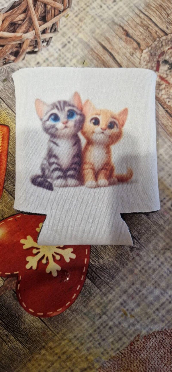 Pochette pour canette/bouteille d'eau motif couple chat gris et marron modèle 4