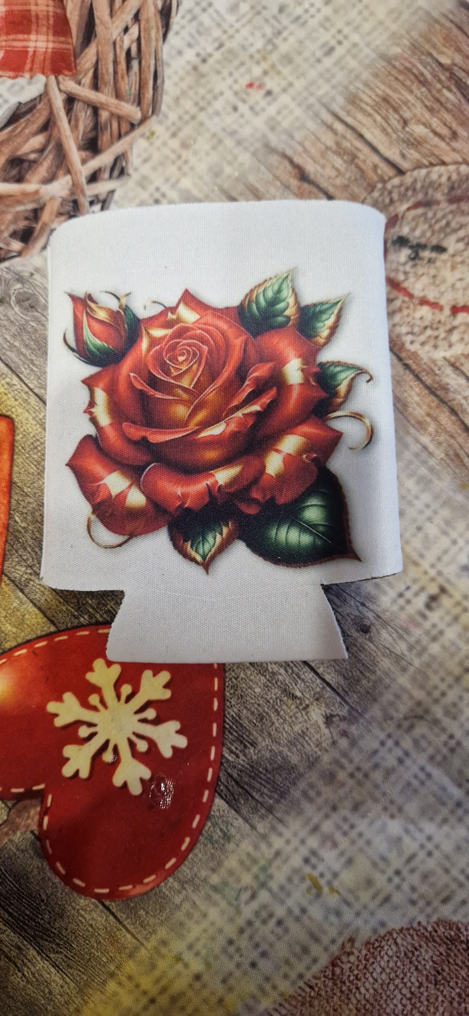 Pochette pour canette/bouteille d'eau motif rose rouge