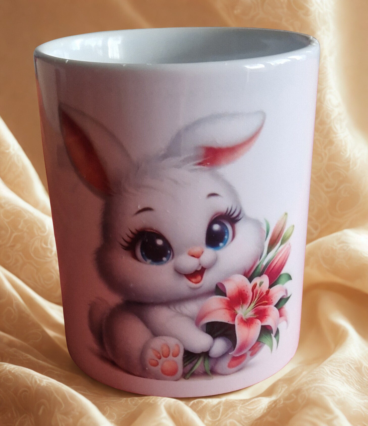 Tasse en céramique blanche motif lapin avec fleur