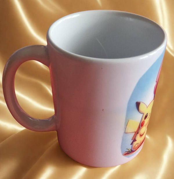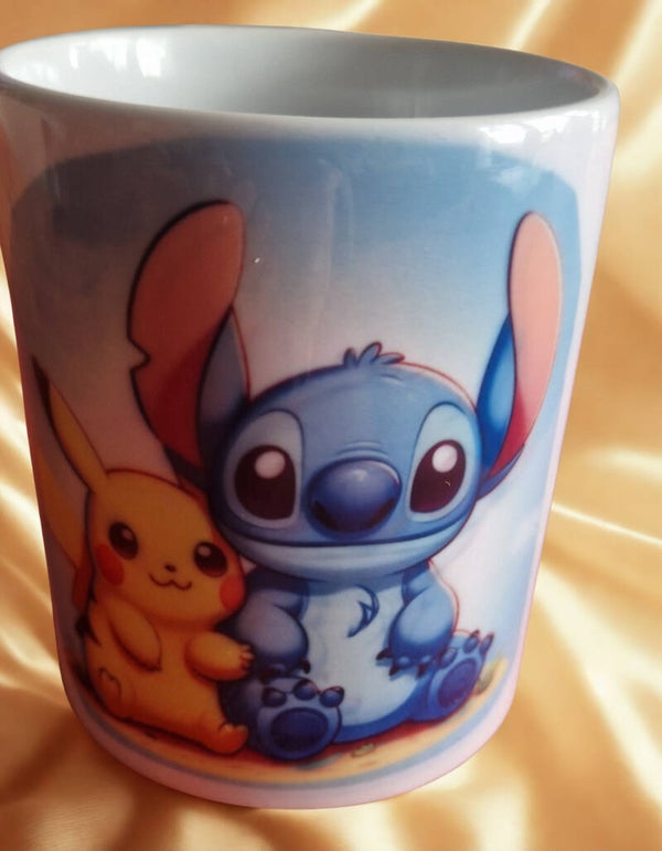 Tasse en céramique blanche motif ensemble pikachu et stich